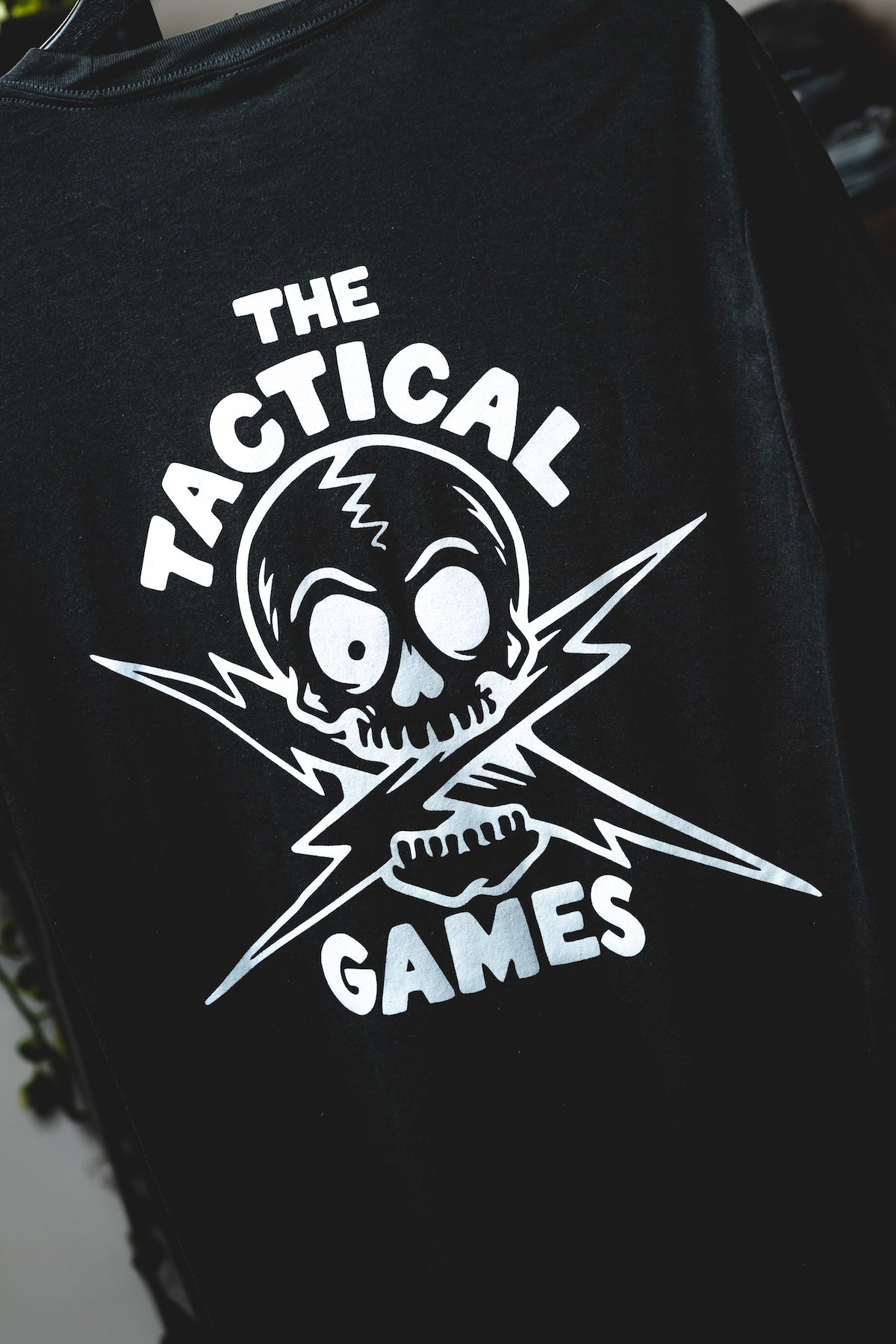 The Tactical Games Lightening Bolt / Skull Logo Tee printed on Deepest Gray Tri-Blend Tee